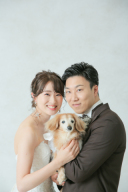 お茶室の玄関でシルエット撮影。縦横のラインの中心のお二人が映えます。