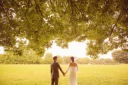 白木に座ってのんびりショット!前髪直してあげてる新郎様も素敵です!