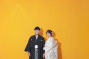 程よく赤色のアクセントが効いた梅の壁は、可愛らしくお二人のお写真を彩ってくれます!