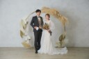 背景に合わせたドライフラワーのブーケで!ブーケも当店オリジナルで作ってもらったものです。とっても似合いますね!