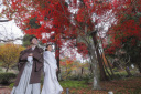 12月の中旬になりましたが、まだ紅葉が美しく残っていました。鮮やかさが二人を包みます。