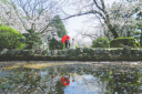 美しい庭園の池バックにおふたりの姿をお撮りしました。