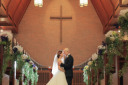 おふたりのシルエットをカーテン越しに映し出しました。幻想的です。