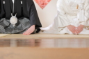 和装白無垢で背景に色柄を極力無くして撮っています。シンプルに撮ればおふたりに目がいきますよね!