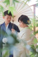 背景を砂壁でシンプルに撮ればおふたりがより目立ちますよ。こんなラフなショットも画になります。