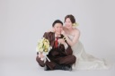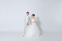 いくつかある背景の中でも、シンプルな白壁はお二人と衣装を引き立たせます。