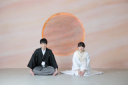 ポップなイエロー背景で寄り添いにっこりショットで撮影終了です!!