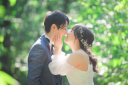 陰影が美しい木陰で。ご新婦様のソロショットも大切にお撮りします。