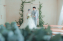 壁一面のお花背景は、ハッピーな雰囲気になりますね。