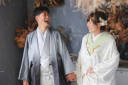 和装ならではの正座のショット!おふたりの頭上「謹賀新年」の文字が見えそうです!!