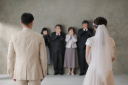 広いお茶室でごあいさつ風の正座姿。年賀状やウェルカムボードにもピッタリ。