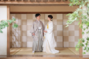 落ち着いた雰囲気の背景に、白無垢がくっきりと浮かび上がります。