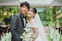 あたたかな光が差し込む春。桜も満開になり、おふたりを照らしているよう。
