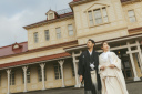 シンプルな立ちポーズでのショットはお2人のお衣装がしっかり写り映えます!お2人の身長差も素敵です。