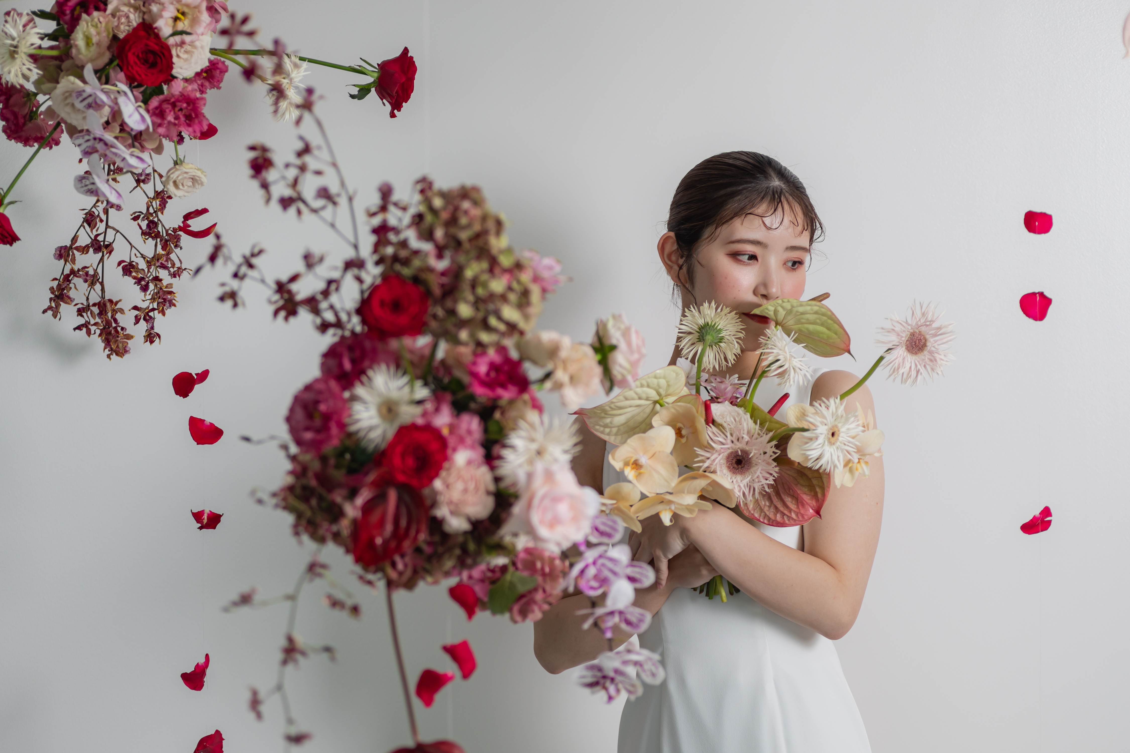 お花に囲まれたスタジオでのフラワープランでとびきりオシャレな雰囲気に。
