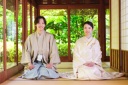 障子を背景に撮影スタート!お二人ともいい笑顔ですね!(^^)!