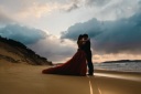ガーデンの背景とカラードレスの色合いがとても素敵です!