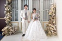 ウェディングドレスに着替えてカッコよく背合わせショット!