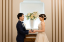 ご新様は白無垢と綿帽子で身を包み、ご新郎様も柔らかいお色味の紋付袴を。お写真からおふたりのあたたかな雰囲気が伝わってきます◎