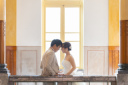 こちらの背景では、なんと台の上に座ってご撮影ができます!おふたりの表情が素敵♡