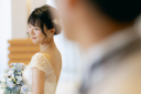 朝の10時の日差しが差し込む明るいお写真、おふたりが寄り添ったカットから撮影スタートです◎