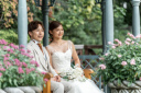 お互いの方に寄り添う雰囲気でのお写真。背中あわせ風でお二人の仲の良さが伝わりますね!!