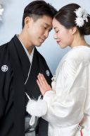 3色のみのシンプルな背景に、おふたりのお衣装が映え大人シックな雰囲気に♪