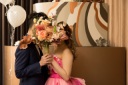 お持ち込みアイテムのイニシャルブロックでおふたりらしさを更にアップ!後ろには洋装姿のおふたりも映っていますよ◎