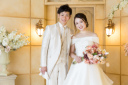 淡いパープルのドレスと、シルバーグレーのタキシードがお花の淡い雰囲気ととてもあっていて統一感のあるお写真に♩♩