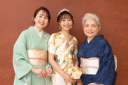 番傘をもってお庭撮影!!番傘も三色ございますので、お着物の色に合わせてお選びいただけます!!