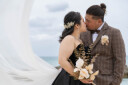 額を寄せ合い、言葉のいらない時間を切り取ったカット。風になびくベールが柔らかさを演出し、ふたりだけの世界観が際立ちます。