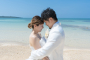 宮古島のビーチを背中に見つめ合う二人とっても素敵です。