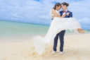 『結婚しました♥』ガーランドを使って海をバックに結婚報告⋆