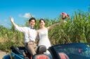 まずは、ビーチをお散歩♪新郎様に甘えている姿がとっても可愛い♡新婦様の自然な笑顔も輝いてます✧