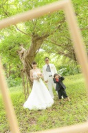 カメラ目線でキメて頂きました☆新郎様の白のタキシードもとてもお似合いですね✶