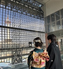 撮影するまでは駅ビルの雰囲気と 和装が合うのかなと思いましたが、 仕上がりを見て大正解だったと思います。