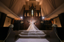 ボリュームたっぷりのプリンセスライン♡光沢感のあるオーガンジーのドレスにあわせて、ご新郎様はシルバーの光沢感が綺麗なタキシードを組み合わせていただきました♩