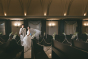途中の窓からこぼれた光を活かした、お2人のシルエット写真。お2人の笑顔が影ごしでも伝わってきて本当にステキです!!