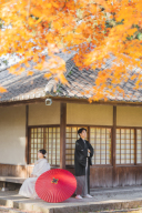 お扇子でお顔半分のショット。前撮りなどにも使いやすいと思います。可愛さ2倍ですね。