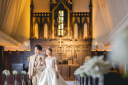 祭壇に向かって歩き始めるおふたり。扉を開けると自然光が差し込むため、祭壇とはまた違う雰囲気のお写真に仕上がります☺