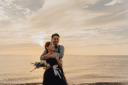 公園からビーチに移動して撮影したカット。白い砂が少しオレンジ色に染まり、日が傾きはじめた時間帯ならではの雰囲気がありました。