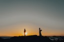 夕日を背景に背中をくっつけて♡