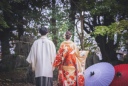 新婦の綺麗なラインと、新郎の格好よくエスコートする姿を捉えた瞬間!