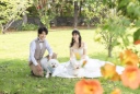 背景がシンプルだからこそ、花とふたりの存在感が際立っている一枚に♡