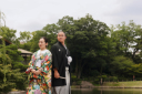 日本家屋に暖簾をかけて、ロケーションにも見える一枚を残しました。ちらっと暖簾をめくったお二人の表情が楽しそうですね!