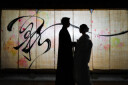 素敵な色合いの暖簾の前で撮影♪お二人の雰囲気と相性バッチリです!