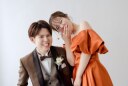 かっこいいポージングは決めつつ、お話しされるおふたり。お揃いのスニーカーにドレスとタキシード、相性バッチリですね♫