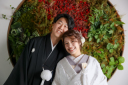 オレンジの花と色打掛の色合いがマッチしていますね。