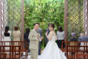 新郎さまはお仕事の帽子を持って、新婦さまはブーケを持って