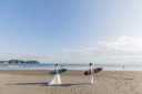 横浜の海をバックに素敵な笑顔をみせてくれました!!海の青とお二人の白い衣装でより爽やかな一枚に!!